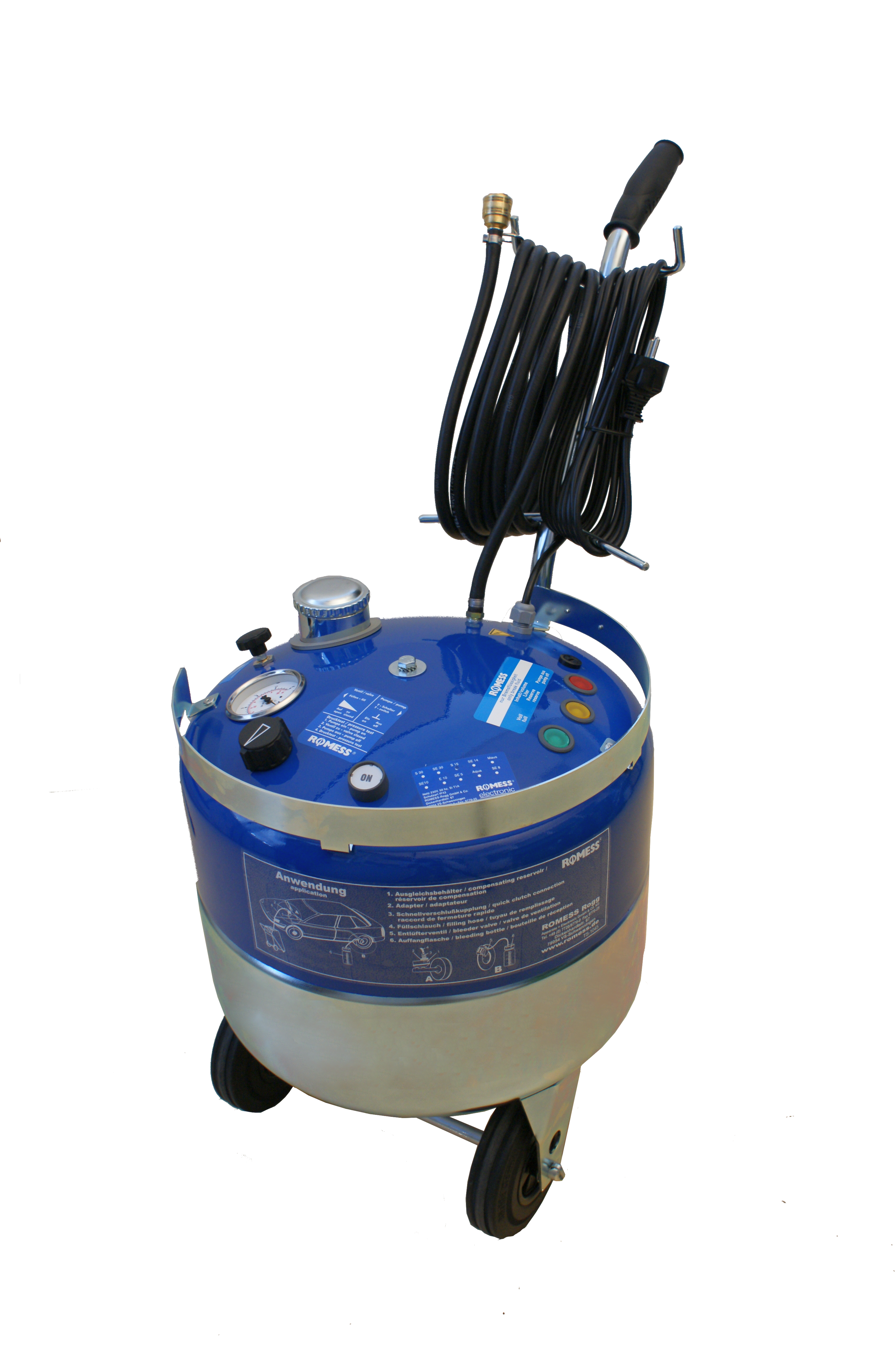 - The integrated 19-litre steel tank can be filled with up to three 5-liter containers of brake fluid. A screen fitting inside the tank nozzle keeps dirt and debris out. The device pumps brake fluid from the tank into the master cylinder fluid reservoir fitted with a special quick-lock adapter. When the electric pump is activated, the pressure in the tank is built up slowly to prevent the brake fluid from churning.